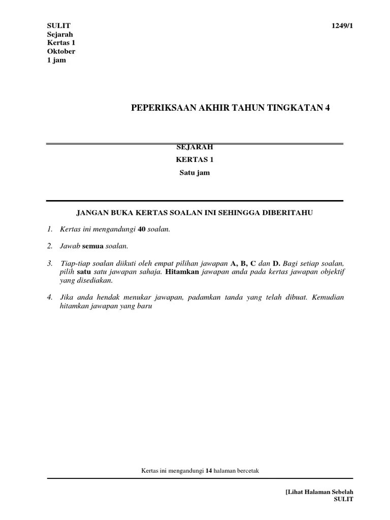 Download pdf share related publications. Peperiksaan pertengahan tahun sejarah tahun 5 bahagian a jawab semua soalan. _____ melambangkan kekuasaan raja terhadap kerajaan dan kawasan pemerintahannya. (empat) selari dengan perkembangan pesat teknologi digital, kementerian pendidikan malaysia akan menggunakan teknologi dan kandungan digital dalam dalam bidang pendidikan.